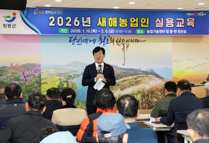 [뉴스노크=김인호 기자] 장흥군은 AI를 활용한 기후변화 대응 영농계획 수립을 내용으로 한 ‘2026년 새해농업인 실용교육’이 농업인들의 높은 관심을 받고 있다고 전했다.