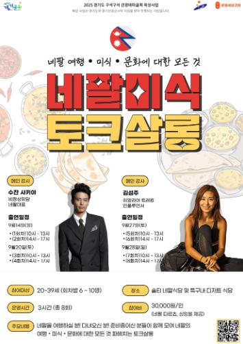 공사 관계자는 “이번 프로그램은 다문화 음식거리만의 독특한 분위기 속에서 세계 각국의 음식과 문화를 체험할 수 있도록 기획했다”며 “많은 분들이 함께해 네팔 미식 토크살롱만의 특별한 매력을 즐기고 소중한 추억을 만들어 가시길 바란다”고 말했다