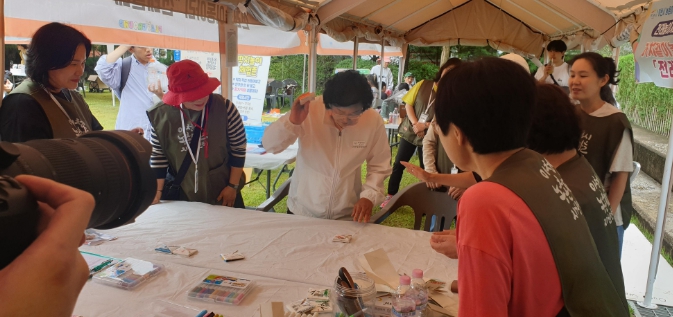 ‘전래놀래’는 친환경 메시지를 담은 [딱! 뒤집는 청춘] 홍보․체험 부스를 운영하며, 우유곽을 활용한 딱지 만들기와 딱지치기 게임을 통해 가족들이 함께 즐길 수 있는 놀이를 선보였다. 특히, 만든 딱지로 상대방을 이기며 다음 단계로 나아가는 방식은 아이들에게 재미를, 어른들에게는 향수를 불러일으키며 큰 호응을 얻었다.