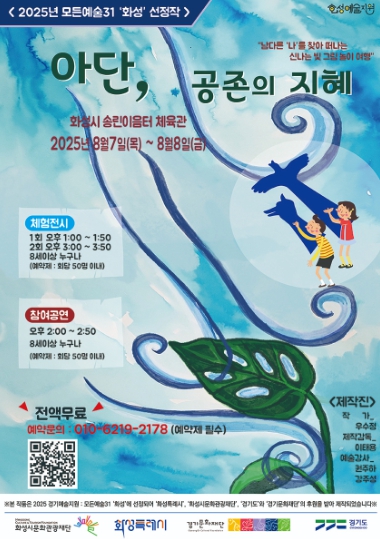 [뉴스노크=김인호 기자] 화성특례시와 화성시문화관광재단이 추진하는 ‘2025 모든예술31 화성’ 사업에 선정된 우수정 작가의 참여형 전시·공연 '아단, 공존의 지혜'가 오는 8월 7일부터 8일까지 화성시 송린이음터 체육관에서 개최된다.