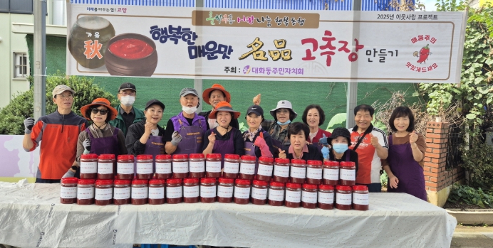 이봉재 대화동장은 “아침 일찍부터 정성을 다해 고추장을 만들고 어려운 지역 주민을 위해 따뜻한 나눔을 실천한 주민자치회 위원들께 감사드린다”며, “앞으로도 지역사회 나눔이 지속될 수 있도록 노력하겠다”고 말했다.