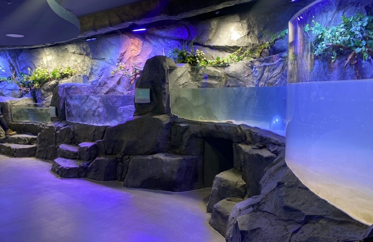 1층에는 자연친화 매립형 수조와 함께, 방문객의 눈길을 사로잡는 입체 포토존이 설치되어 있어 가족 단위 관람객에게 즐거운 추억을 선사하고