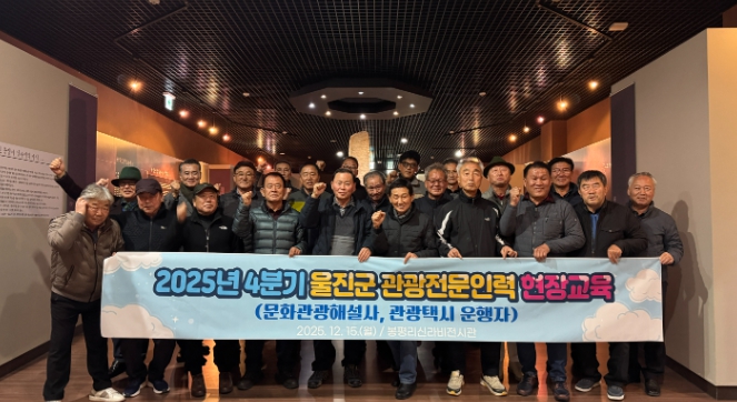 [뉴스노크=김인호 기자] 울진군은 지난 12월 15일 울진봉평리신라비전시관에서 울진군 관광택시 운행자와 문화관광해설사를 대상으로 2025년 4분기 울진군 관광전문인력 정기교육을 실시했다.