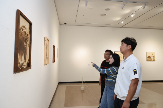[뉴스노크=김인호 기자] 무주군이 다양한 전시회를 열어 가을 방문객들을 손짓하고 있다. 무주최북미술관에서는 오는 10월 30일까지 “빛과 나무의 대화-무주in 인두화 展”이 개최된다.