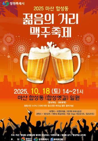 ‘마산 합성동 젊음의 거리 맥주축제’는 지난 2019년 제1회 개최 이후 코로나19로 한동안 중단됐으나 2024년 제2회를 통해 재개되어 올해 제3회 행사에 이르기까지 지역 상권 회복을 위한 대표 시민참여형 축제로 자리 잡아 가고 있다.