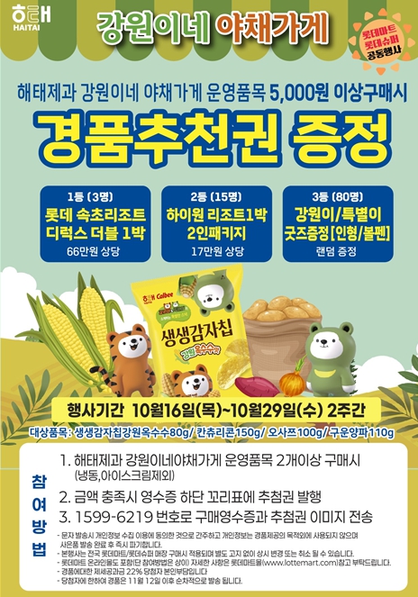 출시 기념으로 매대 내 상품을 5,000원 이상 구매한 고객에게 경품 응모권을 제공하며, 추첨을 통해 도내 리조트 숙박권과 강원이‧특별이 한정판 굿즈를 증정한다.