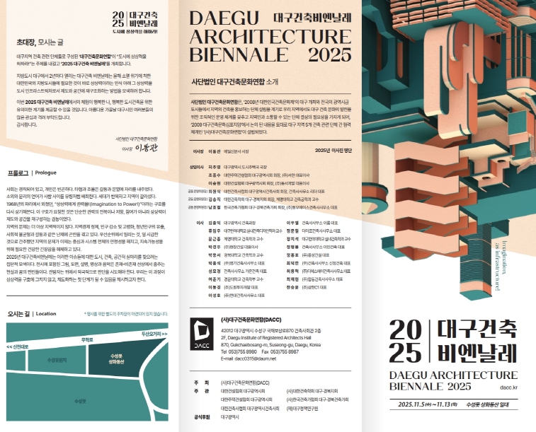 초청전시에서는 ‘2025 대구광역시 건축상’ 수상작, ‘대구건축 아카데미’ 작품, ‘대구건축사회 우수작품’ 등이 소개된다.