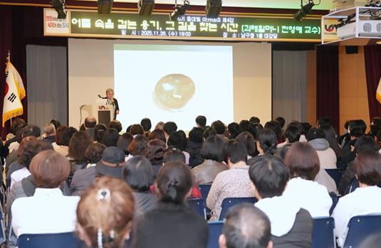 이번 강연은‘어둠 속을 걷는 용기, 그 길을 찾는 시간’을 주제로 진행됐으며, 남구민 250여 명이 참석해 성황을 이뤘다.
