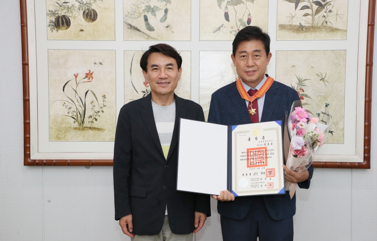 김진태 지사는 도정 주요 기반시설 확충에 기여한 최봉용 전 건설교통국장에게는 홍조근정훈장을, 실・국장들의 일정 조율과 지원 등 보이지 않는 자리에서 도정의 원활한 운영을 묵묵히 뒷받침해 온 이춘근 전 대변인실 주무관에게는 옥조근정훈장을 각각 전수하며 그간의 노고에 깊은 감사를 전했다.