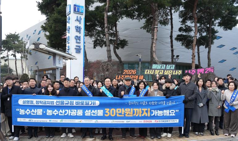 [뉴스노크=김인호 기자] 전라남도 나주시가 설 명절을 앞두고 혁신도시 공공기관과 함께 청탁금지법에 대한 올바른 이해를 돕는 캠페인을 펼치며 청렴 문화 확산에 나섰다.