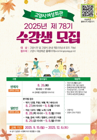| ▲ 고양시 여성회관 ‘2025년 제78기 수강생 모집’ 안내문 |