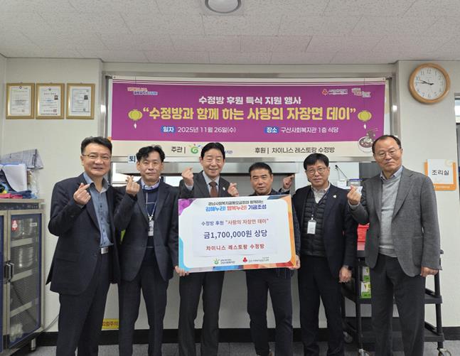 수정방은 이날 자장면과 군만두, 두유로 구성된 특식 170인분을 후원했으며, 행사 전 후원 전달식을 통해 지역사회 연대의 메시지를 함께 나눴다.