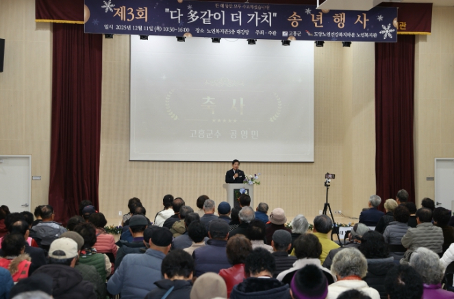 [뉴스노크=김인호 기자] 고흥군은 지난 11일 도양노인건강복지타운 노인복지관 대강당에서 지역 어르신 300여 명이 참석한 가운데 ‘2025년 연말 송년행사’를 성황리에 개최했다고 밝혔다.