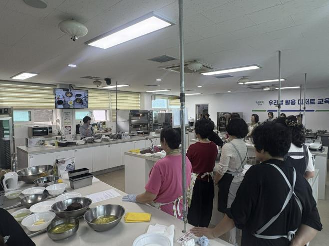 교육에 참여한 생활개선회원들은 먼저 가루쌀의 효능과 활용 방법에 대한 이론 교육을 들으며 우리쌀이 가진 영양적 가치와 기능성을 이해했다. 이어 실습을 통해 우리쌀을 활용한 △팥카스테라 △계란쿠키 만들기를 직접 체험했다.