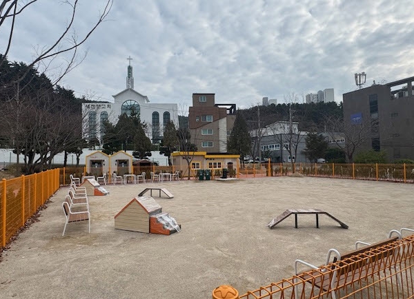 ‘기장 반려견 어울림 쉼터’는 최근 반려동물 양육 가구 증가 추세에 대응하여 반려견이 자유롭고 안전하게 뛰어놀 수 있는 1,969㎡ 규모의 전용공간으로 마련됐다.