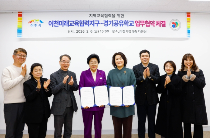 [뉴스노크=김인호 기자] 이천시는 2월 6일, 2026년도 이천미래교육협력지구(경기공유학교 학교맞춤형) 사업의 원활한 추진을 위해 이천교육지원청과 ‘이천미래교육협력지구-경기공유학교 업무협약’을 체결했다고 밝혔다.
