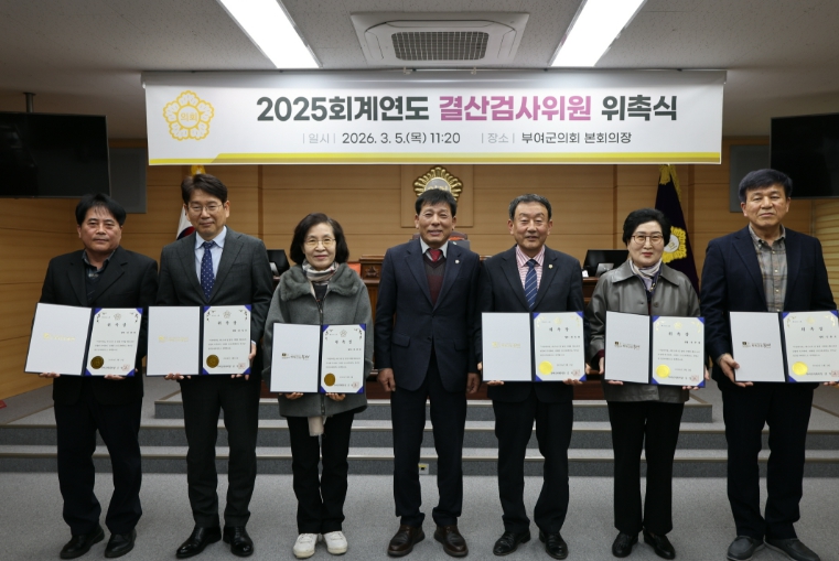 [뉴스노크=김인호 기자] 부여군의회는 5일 본회의장에서 제299회 부여군의회 임시회 제1차 본회의를 통해 선임된 2025 회계연도 결산검사위원에 대한 위촉장 수여식을 가졌다고 밝혔다.