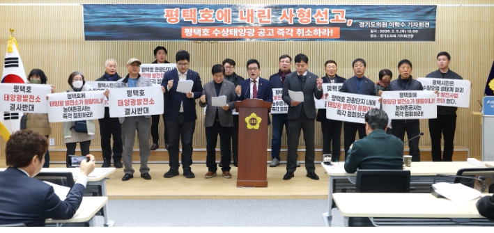 이날 이학수 의원은 △평택호 수상태양광 사업 공고의 즉각 취소 △밀실 면담 경과의 전면 공개와 평택시의 명확한 반대 입장 표명 △평택호 관광 활성화와 인프라 구축을 위한 범정부 대책 수립 △대규모 에너지 사업 추진 시 지자체 동의와 주민 공론화를 의무화하는 법령 개정을 촉구했다.