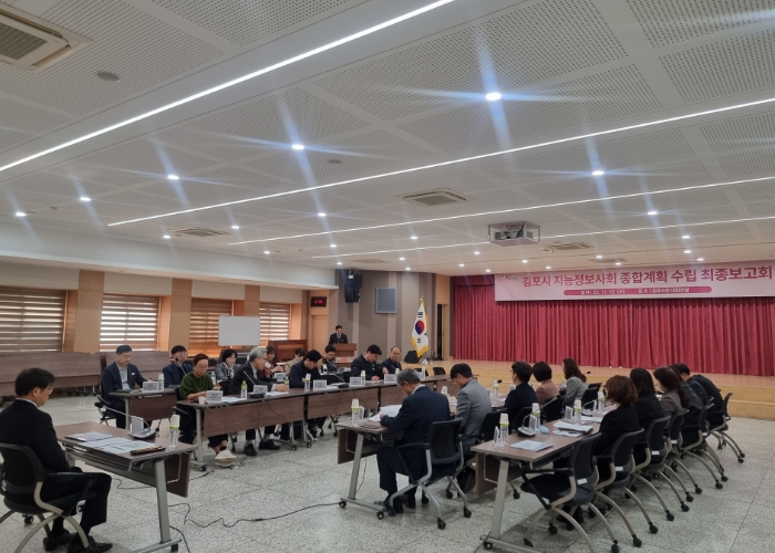 이번 최종보고회에는 부시장을 비롯한 김포시 정보화위원회 위원, 이행과제 관련 부서장 등 30여 명이 참석했으며, 김포시가 향후 5년간 추진할 지능정보사회 구현 전략의 완성도를 높이기 위해 그간의 수립 과정과 핵심 추진과제를 공유하고 정책 방향을 논의하는 자리로 진행됐다.