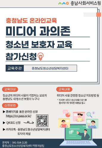충남사회서비스원 청소년상담복지센터는 매년 보호자교육을 비롯해 ‘인터넷·스마트폰 치유캠프’, ‘미디어 과의존 청소년 치료비 지원’ 등 다양한 프로그램을 운영하며 청소년의 건강한 성장과 올바른 미디어 이용 환경 조성을 위해 노력하고 있다.