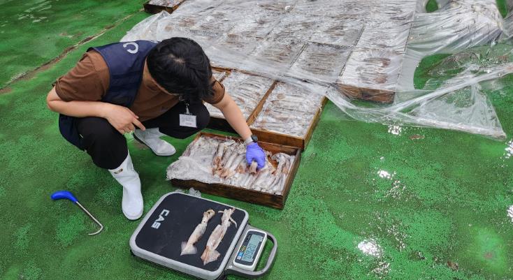 ▲ TAC 사진-오징어 TAC 어획량 확인 및 무게 측정 |