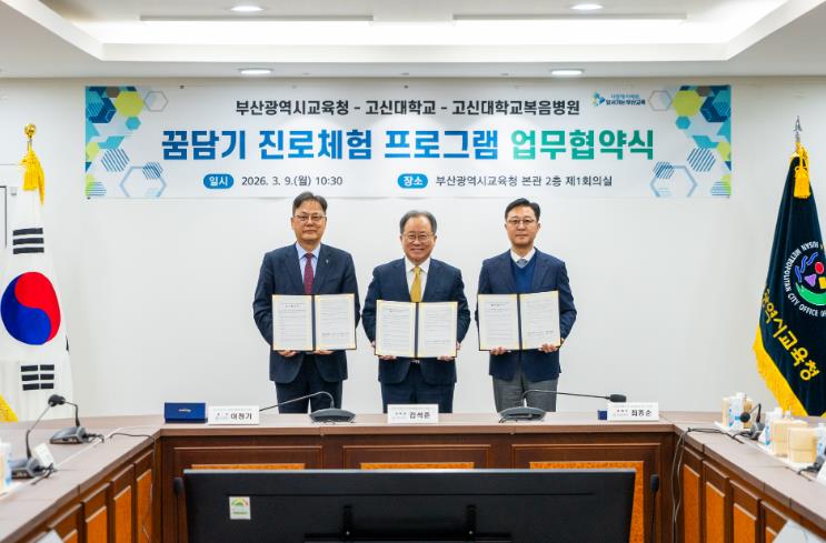 [뉴스노크=김인호 기자] 부산광역시교육청은 9일 오전 교육청 회의실에서 고신대학교, 고신대학교복음병원과 ‘꿈담기 진로체험 프로그램’운영을 위한 업무협약을 체결했다.