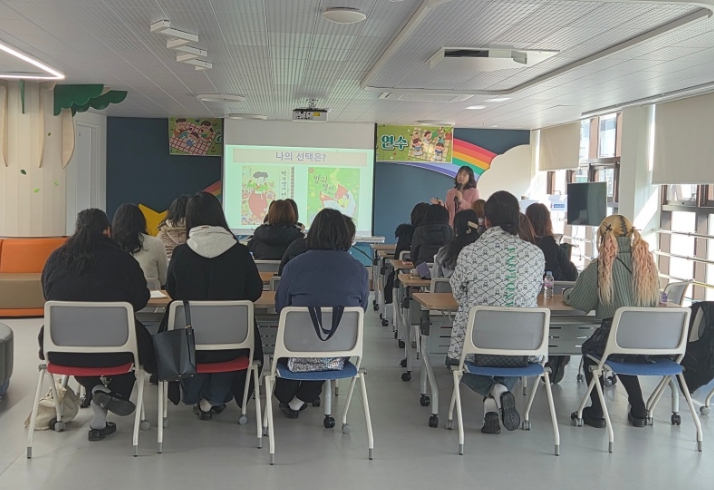 연수 주제는 '문해력을 높이는 그림책 읽기'로, 두근두근그림책연구소 정수경 소장을 강사로 초청해 진행됐다. 1차 연수에서는 ‘3월의 그림책’을 중심으로 이야기 틀을 짜는 그림책 활동을 통해 깊이 읽기 방법을 다루었다. 이어 3월 27일과 4월 10일에는 각각 ‘말을 빚는 그림책 읽기’, ‘그림책을 활용한 상상놀이’를 주제로 심화 연수가 이어질 예정이다.