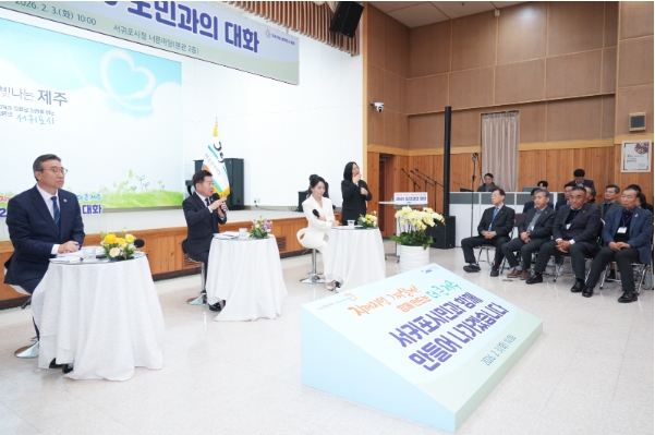 제주도는 3일 오전 10시 서귀포시청 너른마당에서 ‘2026년 도민과의 대화’를 개최하고, 서귀포의 주요 현안과 발전 방향을 도민과 함께 논의했다.