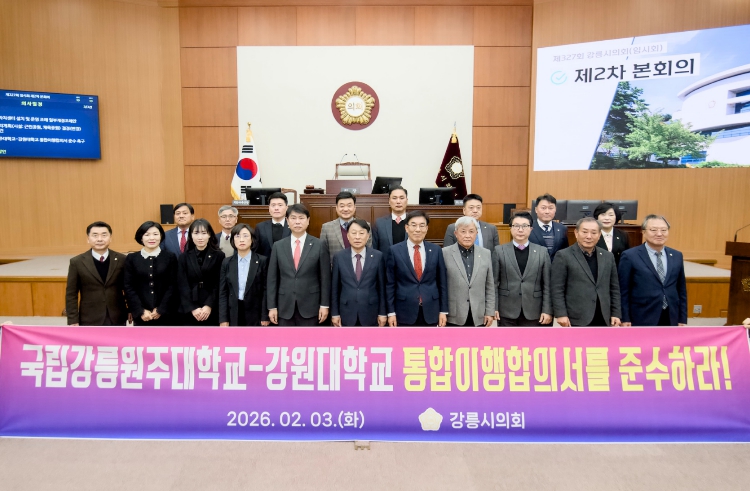 [뉴스노크=김인호 기자] 강릉시의회는 3일 제327회 강릉시의회(임시회) 제2차 본회의에서 조대영 의원의 대표발의로 ‘국립강릉원주대학교-강원대학교 통합이행합의서 준수 촉구 성명서’를 발의했다.