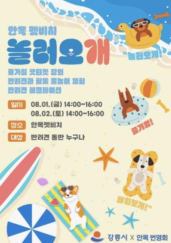 조원집 안목해수욕장 운영위원회장은 “안목 펫비치는 반려견과 함께 해수욕을 즐기는 관광명소로, 이번 행사를 통해 성숙한 반려 문화 정착은 물론, 반려인과 비반려인 모두가 함께 공존할 수 있는 해변 문화를 조성하는 계기가 되길 희망한다.”고 전했다.