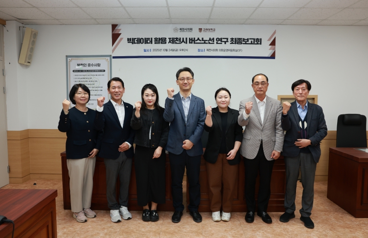 이번 연구는 제천시의 통학·통근 노선 불편사항을 개선하고 시민이 체감할 수 있는 대중교통 체계 마련을 위해 추진된 것으로, 송수연·이정현·윤치국·김진환 의원이 참여해 고려대학교 디지털혁신연구센터에 의뢰하여 7개월간 진행됐다.