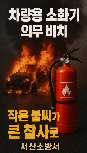 ▲ 서산소방서, 차량화재 초기 대응 위해 ‘차량용 소화기 비치’ 적극 당부 |