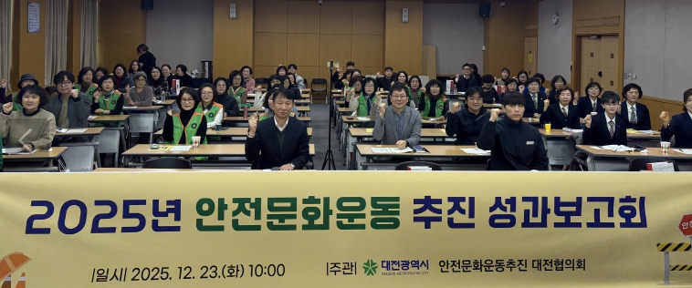 [뉴스노크=김인호 기자] 대전시는 23일 대전시청 세미나실에서 안전문화운동추진 대전협의회 소속 기관 및 단체 관계자 100여 명이 참석한 가운데 2025 안전문화운동 추진 성과보고회를 개최했다.