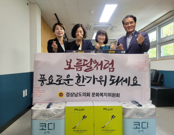 [뉴스노크=김인호 기자] 경상남도의회 문화복지위원회(위원장 박주언)는 24일, 민족 고유의 명절인 추석을 앞두고 김해 장유1동 주민센터를 방문해 관내 지역아동센터 2곳에 위문품을 전달하고 시설운영 현황과 애로사항을 청취했다.
