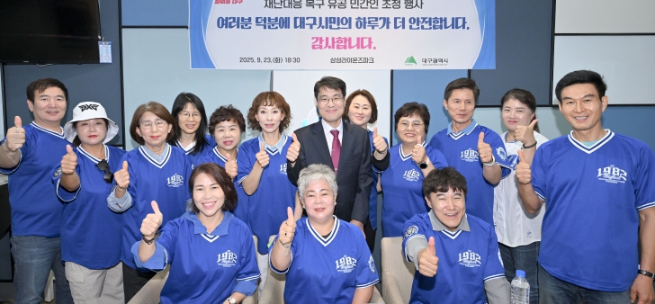- 김정기 대구광역시장 권한대행 행정부시장은 “이번 행사가 재난 대응 및 복구를 위해 최선을 다해주신 지역자율방재단과 의용소방대원 여러분께 작은 위로와 격려가 되길 바란다”며 감사의 뜻을 전했다.