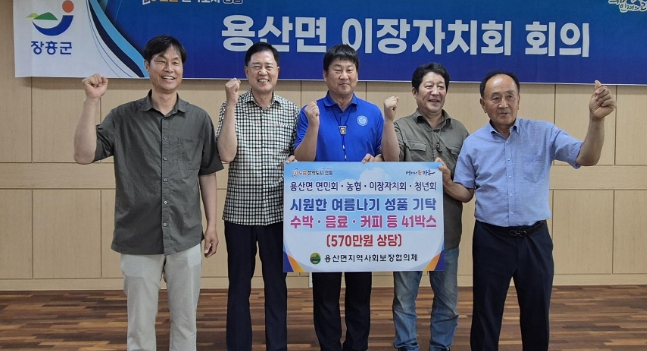 [뉴스노크=김인호 기자] 장흥군 용산면 기관·사회단체에서는 18일 정기 이장회의에서 어르신들의 건강한 여름나기를 위한 기탁행사를 가졌다.