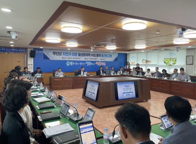 [뉴스노크=김인호 기자] 전남 무안군은 지난 23일 부서장 등 40여명이 참여한 가운데 기후변화에 대응하는 친환경 교통수단으로 자전거 이용을 활성화하기 위한 ‘무안군 자전거 이용 활성화계획 수립 용역’ 중간보고회를 개최했다.