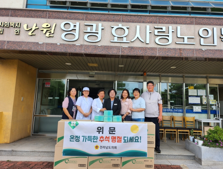 [뉴스노크=김인호 기자] 전라남도의회 오미화(진보당·영광2) 의원이 추석 명절을 앞둔 9월 24일, 영광군 법성면 ‘영광효사랑노인복지센터’를 방문해 어르신들과 종사자들을 격려하고 위문품을 전달했다.
