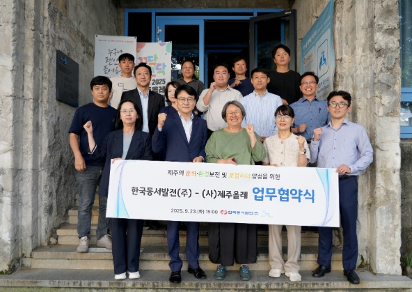 [뉴스노크=김인호 기자] 한국동서발전㈜(사장 권명호) 제주사업추진단과 (사)제주올레(대표이사 안은주)는 23일 15시 서귀포 제주올레여행자센터에서 ‘제주의 문화·자연환경 보전 및 지역인재 양성을 위한 업무협약’을 체결했다.