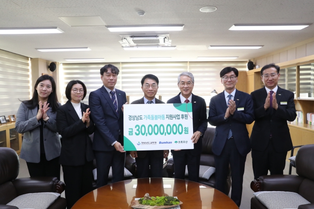 [뉴스노크=김인호 기자] 경상남도교육청은 6일 경남교육청 교육감 집무실에서 범한그룹, 초록우산어린이재단 경남지역본부와 함께 ‘가족돌봄아동지원사업’ 후원금 전달식을 개최했다.