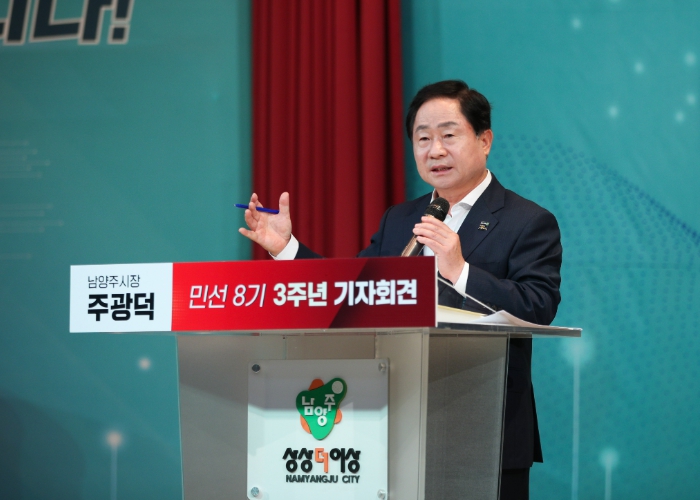 [뉴스노크=김인호 기자] 주광덕 남양주시장은 취임 3주년을 맞아 21일 시청 다산홀에서 기자회견을 열고 지난 3년간의 시정 성과와 앞으로의 비전을 공유했다.