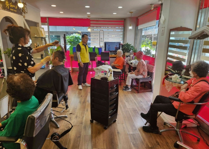 ‘정발살롱’은 매년 4월과 9월 총 2회에 진행되며, 만 80세 이상의 어르신에게 파마, 염색 등 헤어·미용 관리 서비스를 무료로 제공하는 사업이다. 이 사업은 관내 미용실의 재능기부로 추진되고 있다.