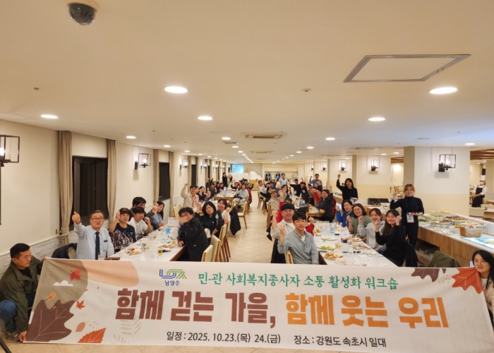 [뉴스노크=김인호 기자] 남양주시는 10월 23일부터 24일까지 강원도 양양·속초 일대에서 ‘남양주시 민·관 사회복지종사자 소통활성화 워크숍’을 개최했다.