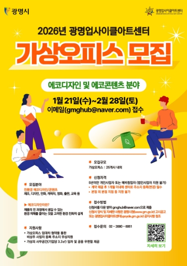 [뉴스노크=김인호 기자] 광명시 광명업사이클아트센터는 오는 2월 28일까지 ‘2026년 상반기 가상오피스 지원사업’ 입주 기업을 모집한다.