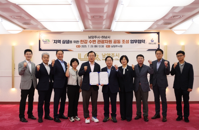 [뉴스노크=김인호 기자] 남양주시는 29일 남양주시청에서 하남시와 ‘지역 상생을 위한 한강 수변 관광 자원 공동 조성 업무협약’을 체결했다고 밝혔다.