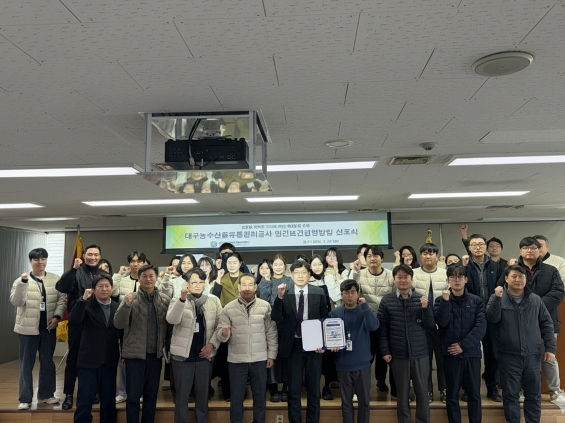 [뉴스노크=김인호 기자] 대구농수산물유통관리공사가 2026년을 안전 경영의 전환점으로 삼고, 노사가 하나 되어 ‘재해 없는 도매시장’을 위한 힘찬 발걸음을 내디뎠다.