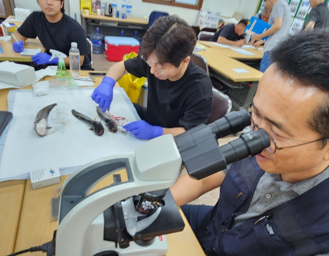 관련 공무원과 공수산질병관리사 등 전문 인력이 참여해 현장에서 질병을 진단하고 처방했으며, 의심 개체는 정밀검사에 부쳤다.