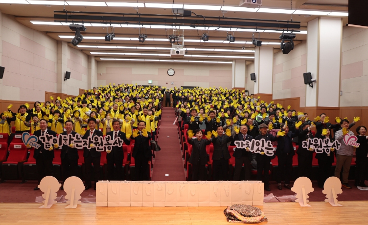 이번 행사에는 자원봉사자와 관계자 등 350여 명이 참석했으며, 2026년도 자원봉사센터 주요 사업 설명을 시작으로 △자원봉사 물결운동 기 전달식 △후원 물품 기탁식 △맑음 버스정류장 활동단체 인증식 등의 순으로 진행됐다.