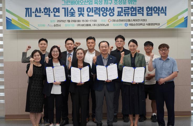 협약에는 ▲㈜코리아노바 ▲어업회사법인 ㈜바다품애 ▲국립순천대학교 식품영양학과가 참여했으며, 기술 교류, 공동 연구, 현장 중심의 인재 양성 등을 함께 추진해 나가기로 했다.