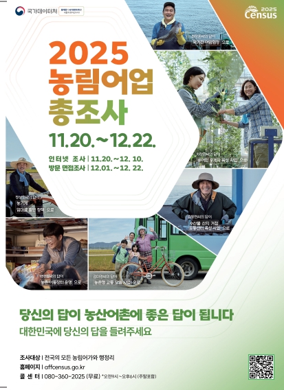 이번 조사는 5년 주기로 시행되는 국가 단위 대규모 통계조사로, 농림어가의 규모와 분포, 경영 형태를 비롯한 지역 단위 경제활동 및 생활기반시설 현황을 종합적으로 파악해 향후 농림어업 정책 수립의 기초자료로 활용된다.